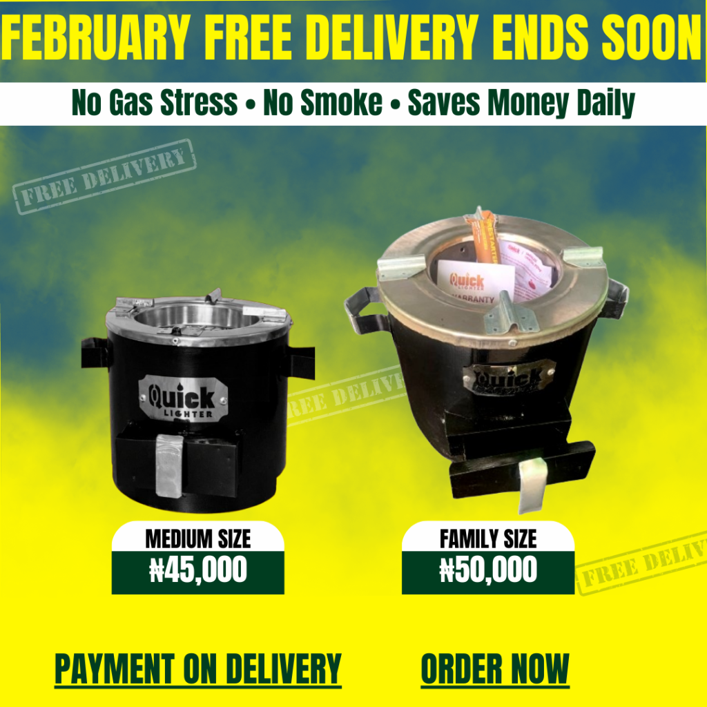OUR QUICK LIGHTER CHARCOAL STOVE IS NOW ₦39,000 FOR ECONOMY/SMALL SIZE, ₦42,000 FOR MEDIUM SIZE AND ₦45,000 FOR FAMILY SIZE RESPECTIVELY.